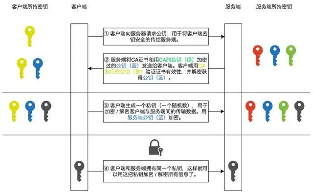 HTTPS采用对称加密来加密通信内容,所用的密钥称为A。用非对称加密来加密密钥A再发送给对方(有点绕)。只要密钥A不落入他人手中,那传输的数据就不会被别人破译。