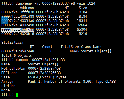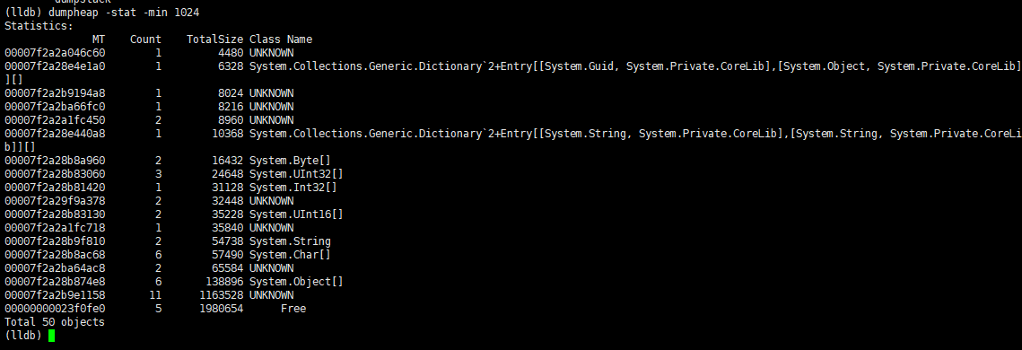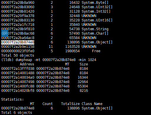dumpheap -mt 00007f2a28b874e8 -min 1024