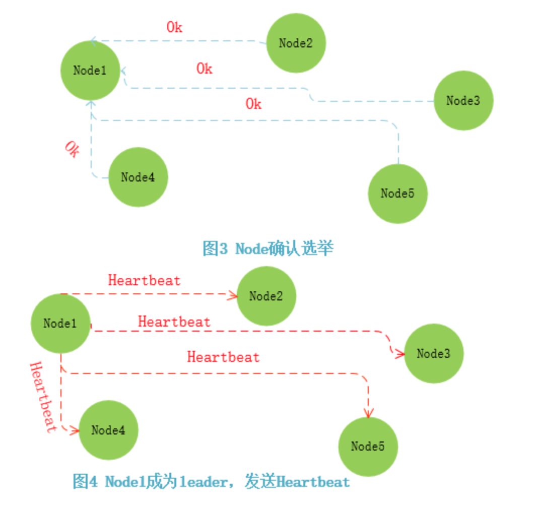 在Raft中当接收到客户端的日志(事务请求)后先把该日志追加到本地的Log中,然后通过heartbeat把该Entry同步给其他Follower,Follower接收到日志后记录日志然后向Leader发送ACK,当Leader收到大多数(n/2+1)Follower的ACK信息后将该日志设置为已提交并追加到本地磁盘中,通知客户端并在下个heartbeat中Leader将通知所有的Follower将该日志存储在自己的本地磁盘中。