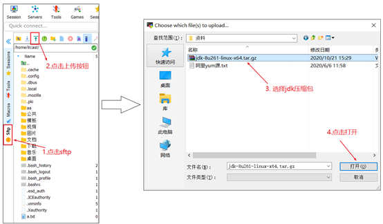 步骤2:通过MobaXterm工具上传jdk压缩包到linux系统
