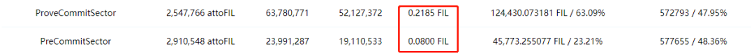 除了增长算力可以获得FIL区块奖励,保持算力并且按要求提供证明也能获得区块奖励,每TB有效算力提交时空证明参与区块奖励时产生的gas费用为:32/2349X1.5194=0.0206FIL (32是因为1TB有32个扇区,2349是因为一个时空证明消息中含有2349个扇区)。