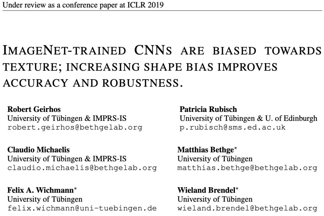 说回论文,在这篇论文中作者提出了纹理假设:即人工智能识别物体过程中最重要的因素不是形状,而是纹理。