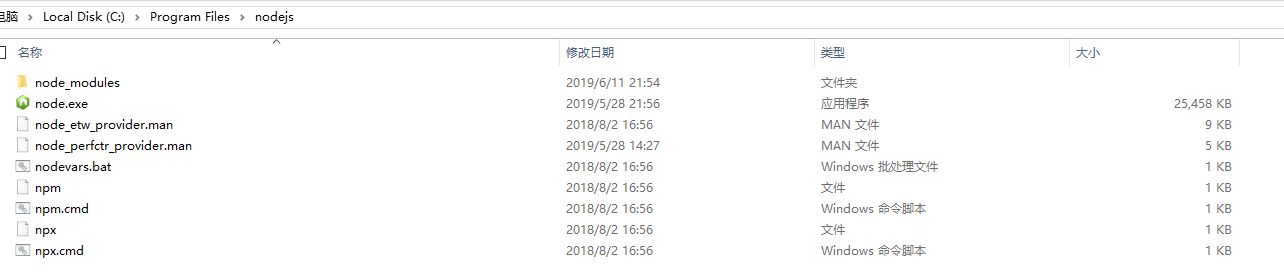 首先C:\Program Files\nodejs\ 下创建两个文件夹,node_cache 和 node_global。