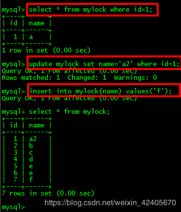 | 当前session对锁定表的查询+更新+插入操作都可以执行: