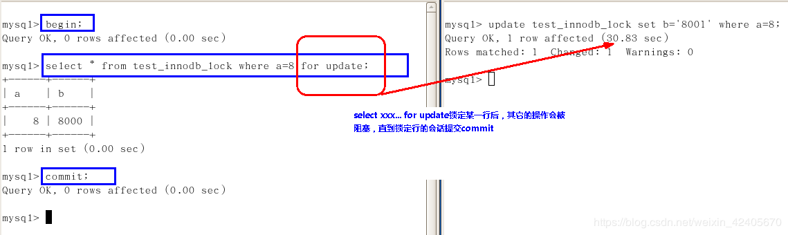 备注:如果可以,请换成不同的id来进行测试,因为mysql聪明有缓存,第2次的条件会从从缓存取得,影响锁效果演示 |