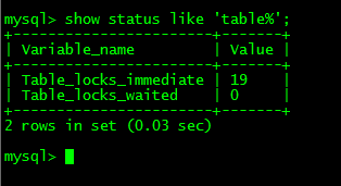 可以通过检查table_locks_waited和table_locks_immediate状态变量来分析系统上的表锁定: