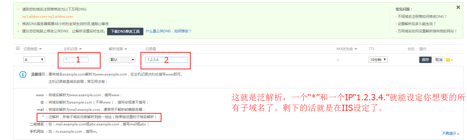 1.A记录 泛型解析 ,(建议推荐 泛型解析 来做二级域名)。直观点,直接上图
