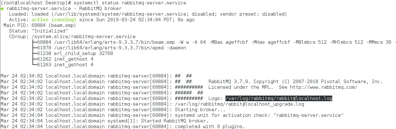 systemctl status rabbitmq-server.service 查看状态