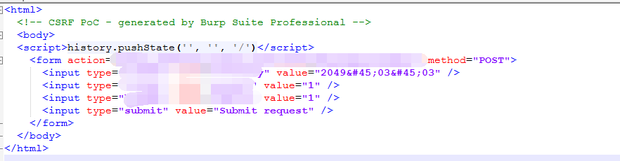 步骤二:为了石锤这个漏洞,写一个HTML页面,这个页面主要工作就是发送该请求,修改用户信息(或者其他信息),就像这样