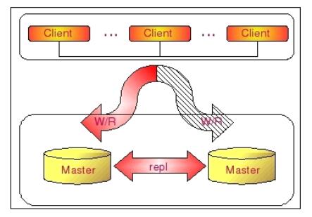 下如将更清晰的展示 Dual Master 复制架构组成: