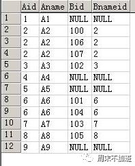 select* from A Left JOIN B ON A.Aid=B.Bnameid