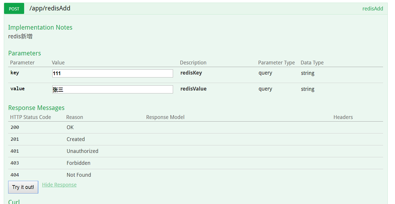 @ApiOperation(value="redisAdd", notes="redis新增")