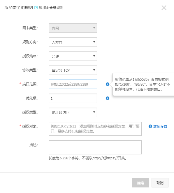 端口范围 8080/8080,授权对象 0.0.0.0/0