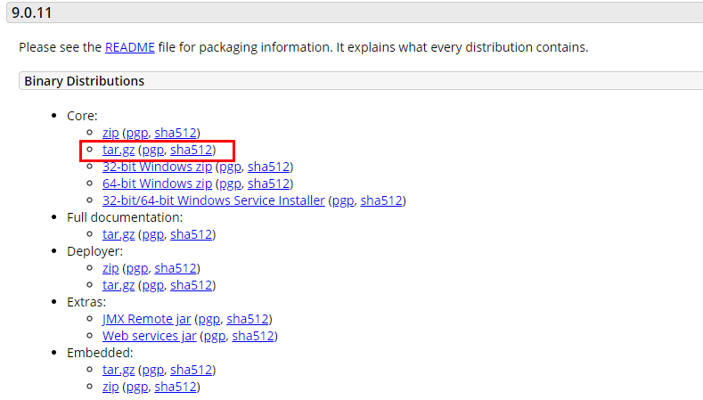 官网下载地址:https://tomcat.apache.org/download-90.cgi