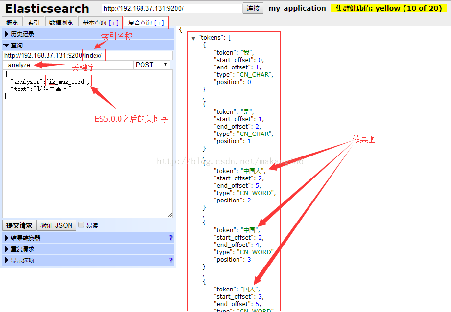 ik_max_word: 会将文本做最细粒度的拆分,比如会将“我是中国人”拆分为“我,是,中国人,中国,国人”,会穷尽各种可能的组合。