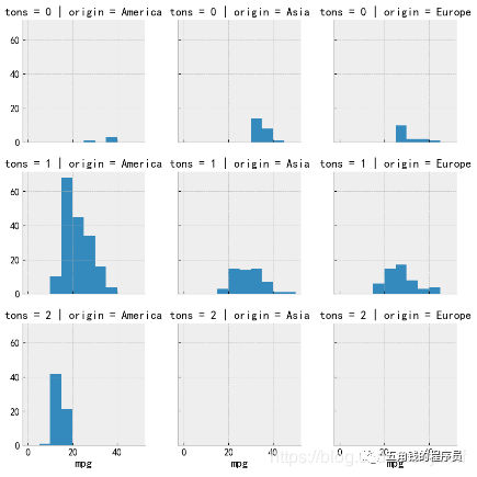 g = sns.FacetGrid(df,col='origin',row="tons")
