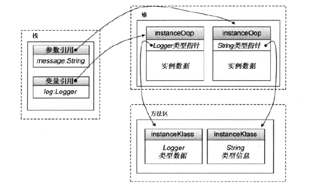 综上,Java对象在JVM中的表示是这样的,对象的实例(instanceOopDesc)存储在堆上,对象的元数据(instanceKlass)存储在方法区,对象的引用存储在栈上。如下图: