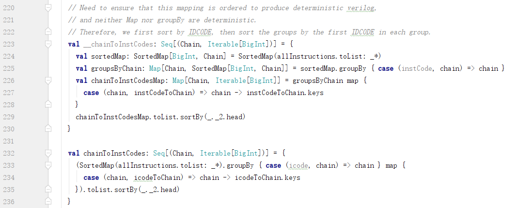 c. chainToInstCodesMap:生成chain到使用这个chain的指令之间的映射;