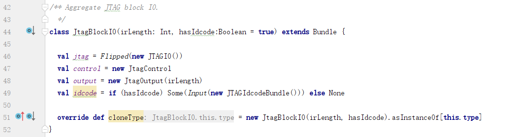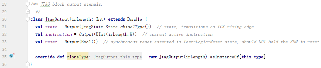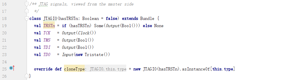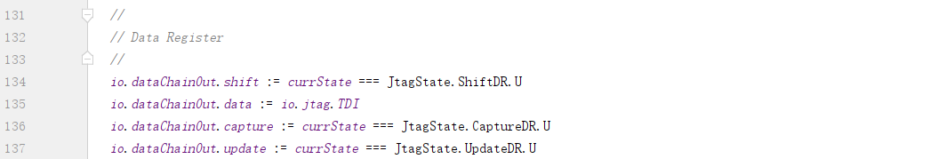 相比较之下,JtagTapController模块的io接口也继承自JtagBlockIO,并且添加了dataChainIn/dataChainOut。
