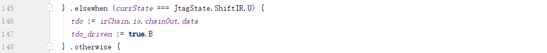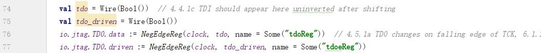 tdo输出到io.jtag.TDO,tdo_driven用于控制TDO是否active: