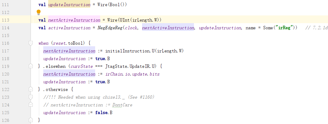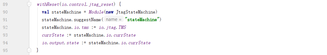 c. 灌入tms信号:stateMachine.io.tms := io.jtag.TMS;