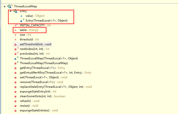 一看原来value 值放在了Entry中 。而每一个Entry都是ThreadLocalMap成员变量 tab数组的一个值。Entry又是ThreadLocalMap的内部类。