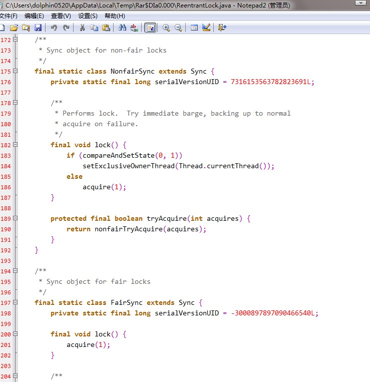 在ReentrantLock中定义了2个静态内部类,一个是NotFairSync,一个是FairSync,分别用来实现非公平锁和公平锁。
