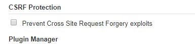 如果要使用GitLab的WebHook触发对应的任务,需要提前在Jenkins——>全局安全配置中取消勾选“Prevent Cross Site Request Forgery exploits”(“防止跨站点请求伪造”)复选框,如下图所示: