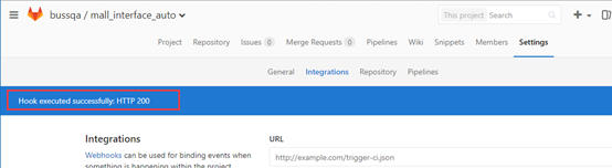 如果配置成功,会在界面上方显示“Hook executed successfully:HTTP 200”,如下图所示: