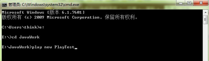 2.切换到要建立工程的目录下,输入play new PlayTest开始创建PlayTest工程