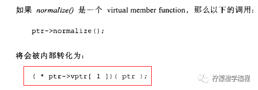 virtual member function虚成员函数normalize()的调用实际上转换成: