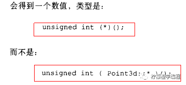 函数指针也有差别,下面第一个是普通函数指针或者static member function。第二个是non-static member function成员函数指针。