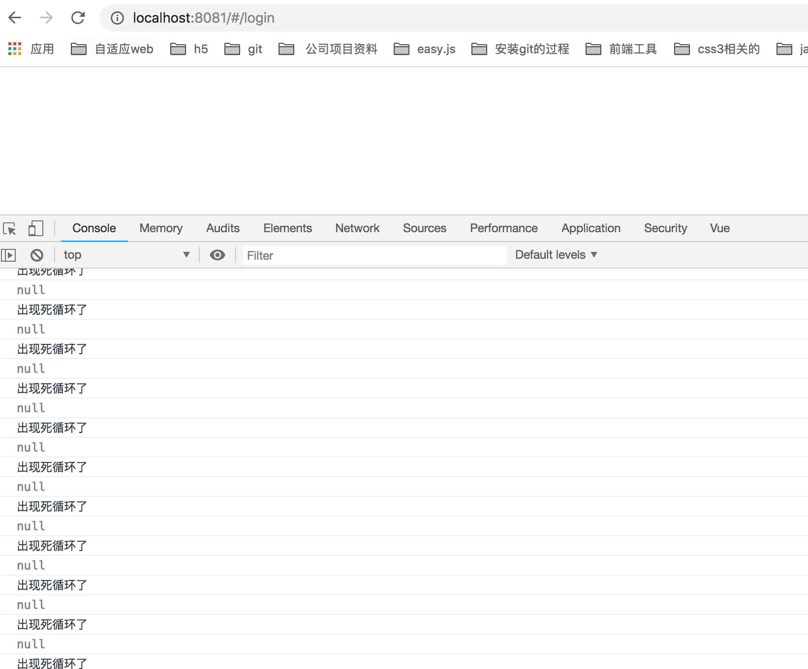 如上代码后会, 当我们刷新下 http://localhost:8081/#/login 后会出现死循环,如下所示: