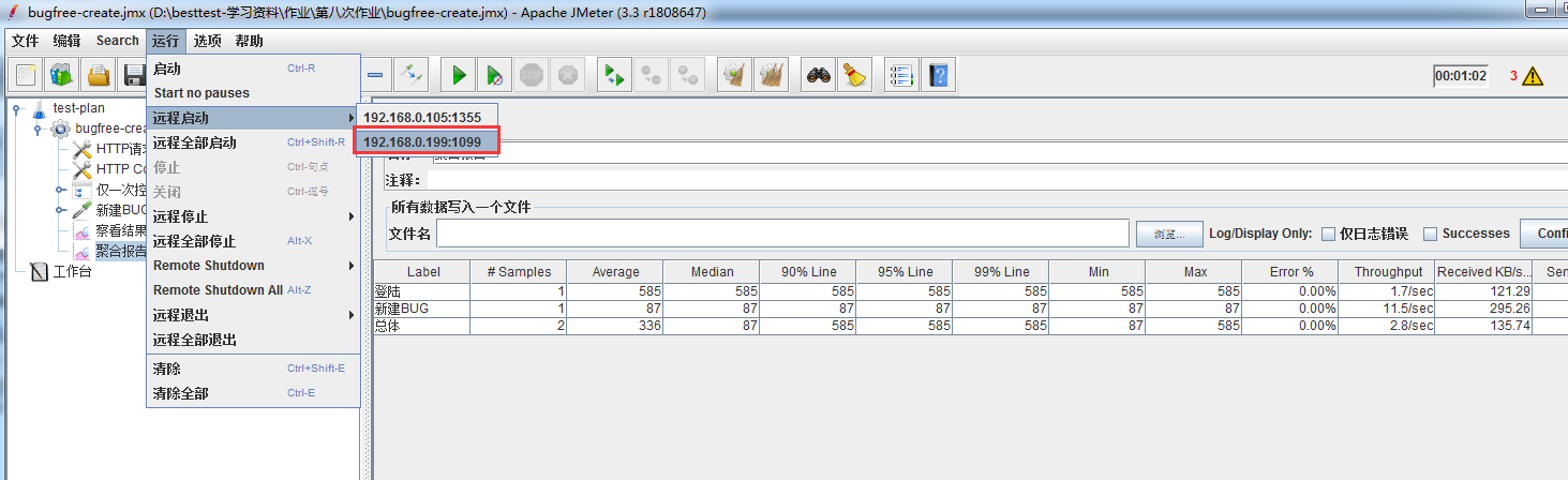 启动后如果运行正常,在调度机上可以看到远端负载机的执行结果,如下图: