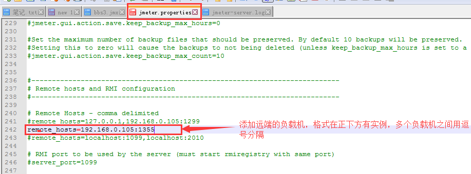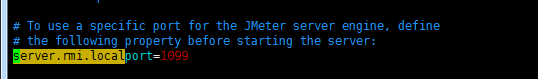 1、进入Jmeter的bin目录,找到Jmeter.properties文件,打开该文件修改如下两个配置项,比如修改端口号为:1355(默认端口号为:1099)