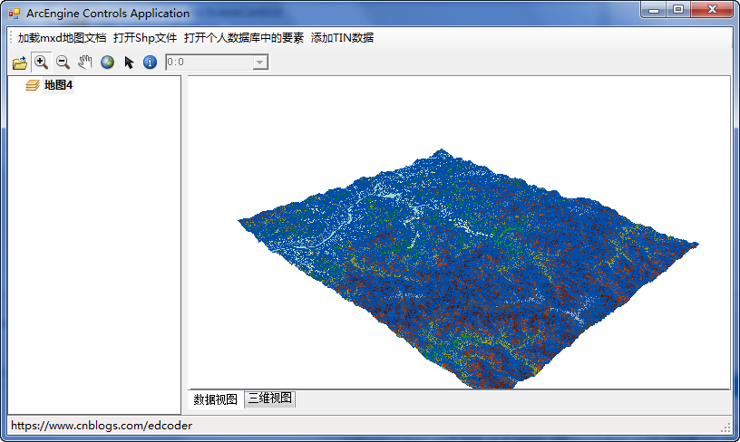加载Tin文件到SceneControll对象和到MapControl对象的方法大同小异。