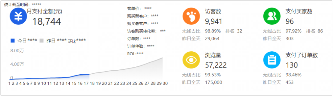 指标:新增访客、新增买家、转化率、ROI、成交金额、客单价、连带率