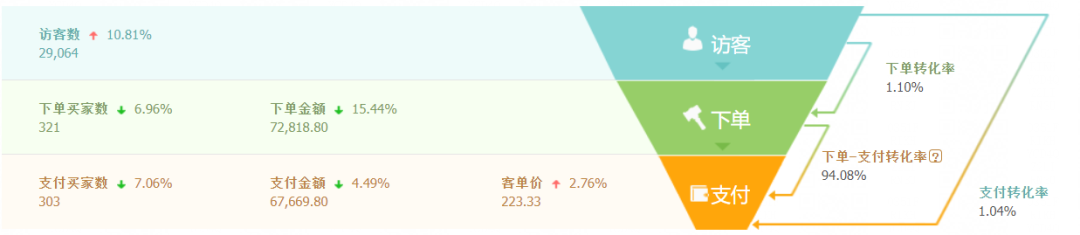 指标:新增访客、新增买家、转化率、ROI、成交金额、客单价、连带率 -