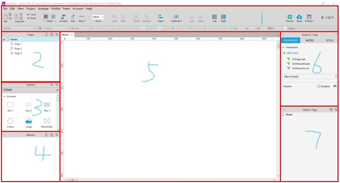 绘制产品原型的操作区域,所有的用到的元件都拖到该区域。