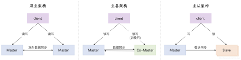 双主模式中,两台服务是平等关系,同时对外提供读写服务,客户端任选一台即可。双主模式是可用性最好的,但是这种架构的一致性处理比较困难,需要两台服务进行双向数据同步。一旦它们之间的通信断开,就形成了网络分区,这种分区会带来脑裂(brain-split)问题,并且系统对此无解,必须人工介入。