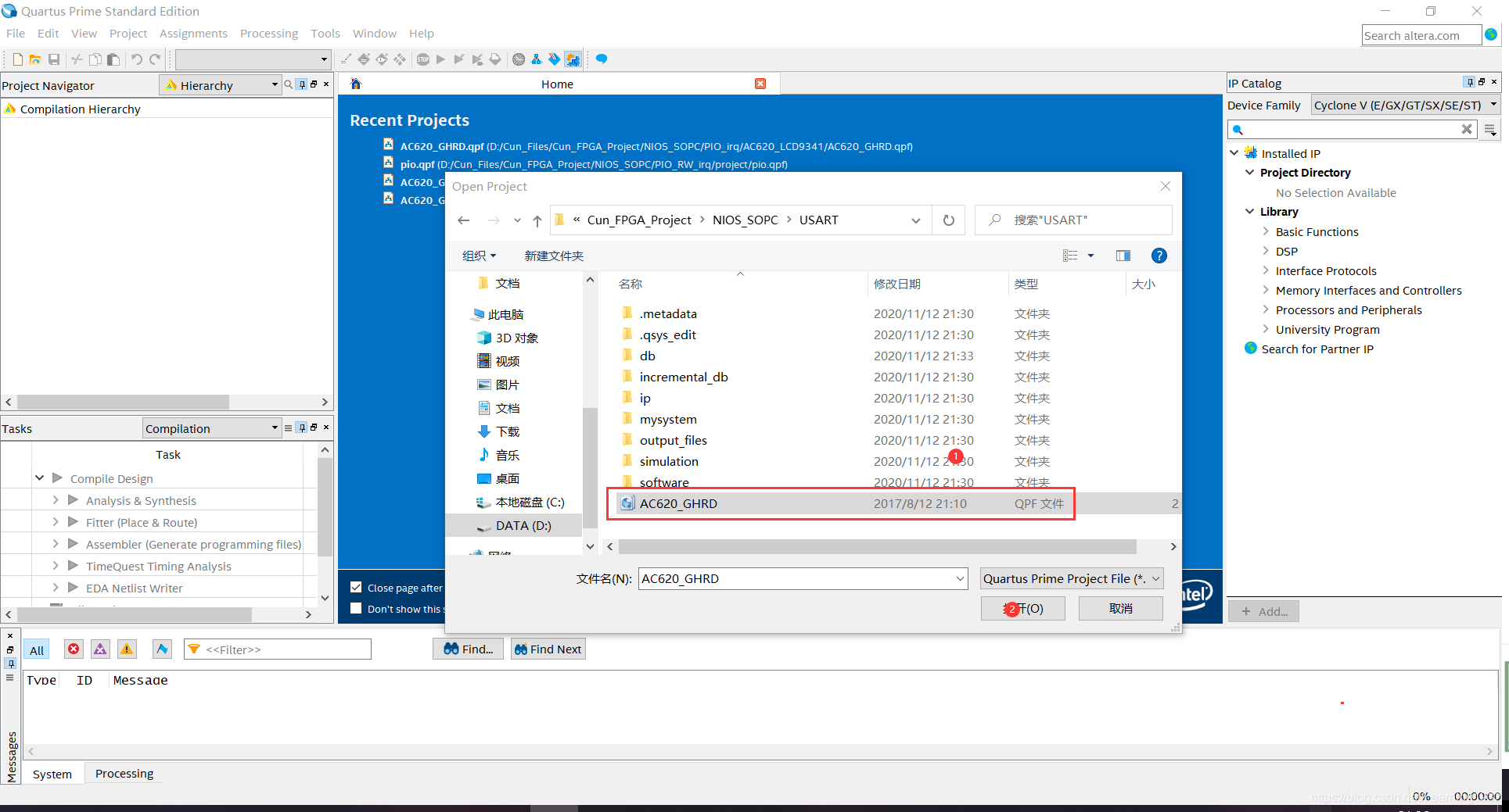 如果你和我FPGA型号不一样,那就复制你的SOPC工程文件到文件夹中,和前面一样,因为其他的步骤大致都和我的一样,没有区别。