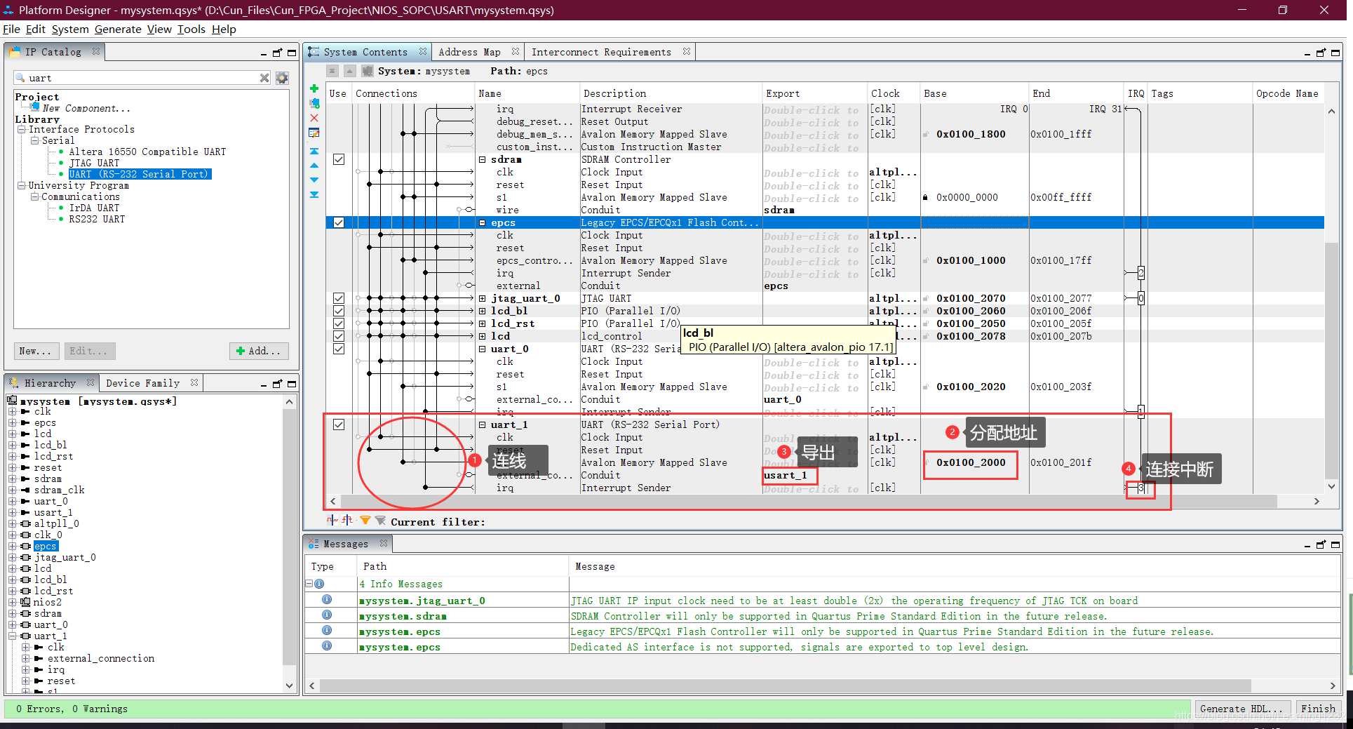 第三步、对添加的核进行连线,分配地址,导出端口,连接中断。