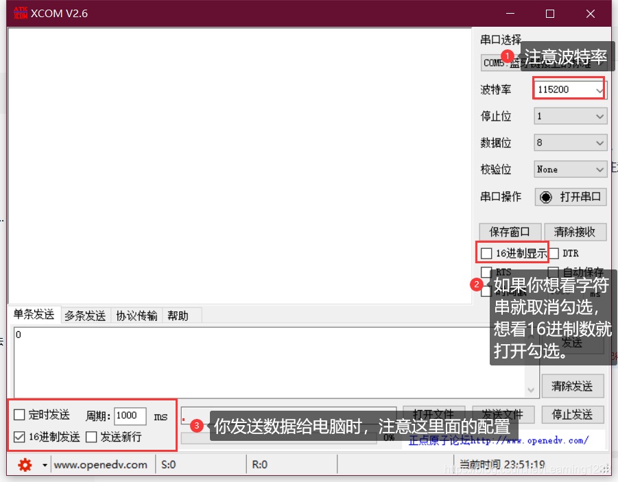 串口这个实验一次性做成功有点难,我们班很多人都搞了好久,我帮别人的时候,发现他们有很多人是使用USB转TTL时 ,将USB的rxd和FPGA定义的rxd接到一起了,所以,请注意:一定要让RXD接TXD。