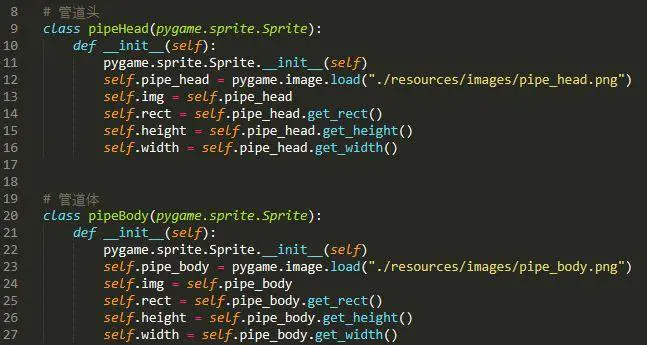 因此,我们定义一个大的管道类,以便构建一个完整的管道障碍物,代码实现如下: