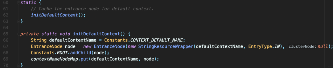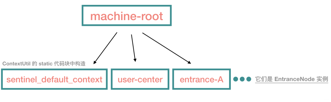 若不显式调用 ContextUtil#enter,那 root 就只有一个默认节点 sentinel_default_context。
