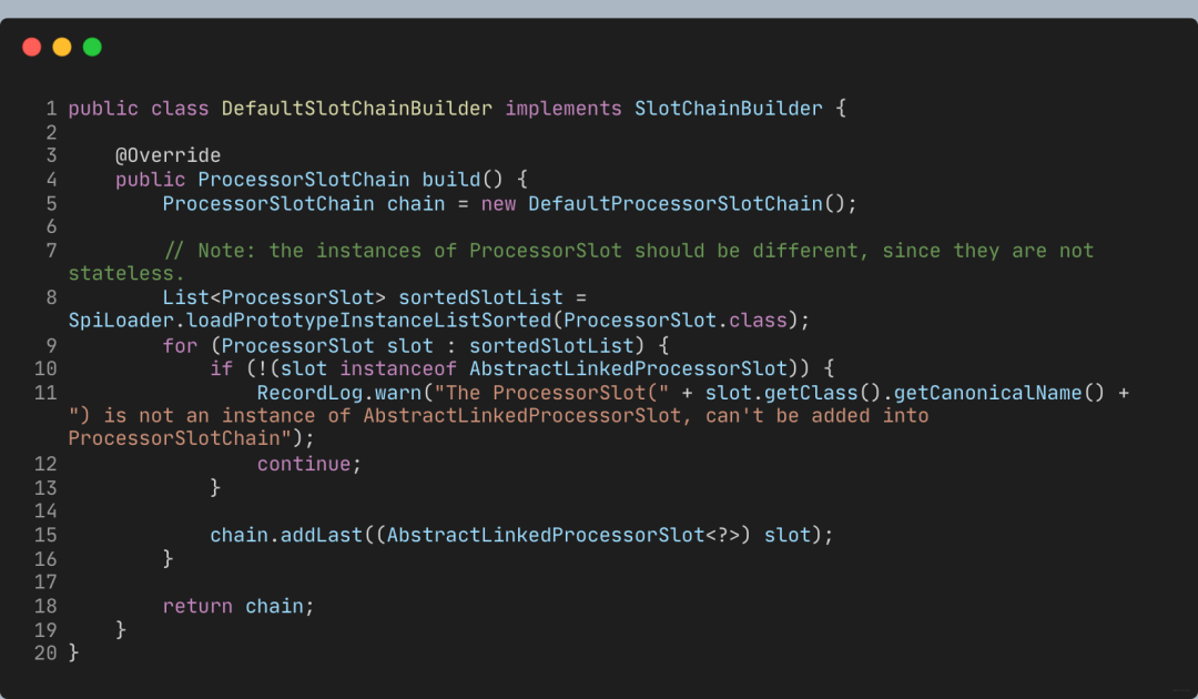 Sentinel 提供了 SPI 端点,让我们可以自己定制 Builder,如添加一个 Slot 进去。