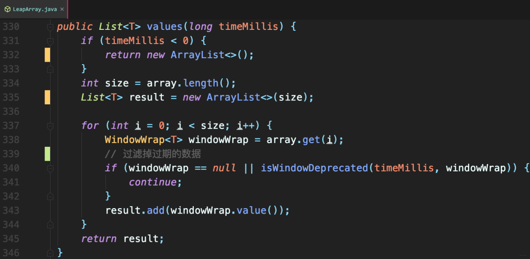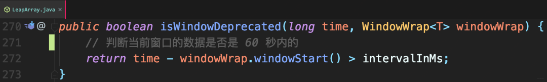 统计数据同理,如统计过去一分钟的 QPS 数据,就是将每个窗口的值相加,当中需要判断窗口数据是否是过期数据,即判断窗口的 WindowWrap 实例是否是一分钟内的数据。