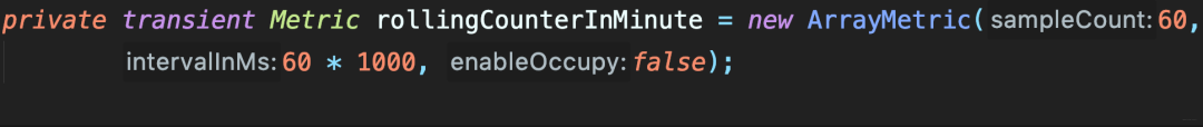 保存最近60秒的统计信息。windowLengthInMs 故意设置为1000毫秒,表示每秒每个桶,这样我们就可以获得每秒的准确统计信息。