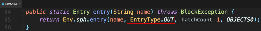 标识资源,通常就是我们的接口标识,对于数据统计、规则控制等,我们一般都是在这个粒度上进行的,根据这个字符串来唯一标识,它会被包装成 ResourceWrapper 实例。第二个参数