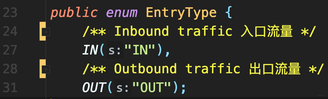流量类型在 SystemSlot 类中用以实现自适应限流,根据系统健康状态来判断是否要限流,如果是 OUT 类型,由于压力在外部系统中,所以就不需要执行该规则。